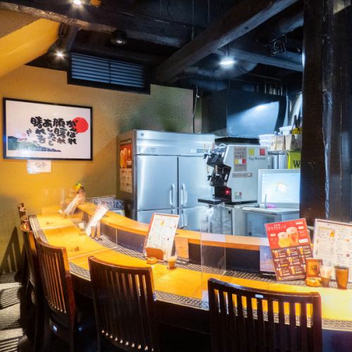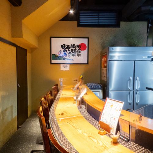 [我們還有吧台座位,即使您獨自用餐也能放鬆身心] 吧台座位可以讓您親眼目睹烹飪過程,烤串的香氣瀰漫在空氣中。吧台適合一人用餐,而弧形桌則可供兩到三人輕鬆交談。非常適合下班後小酌一杯或約會!